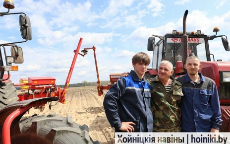 Семейная команда в поле – отец и двое сыновей сеют кукурузу в КСУП «Судково»