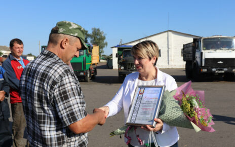 Продолжить чтениеПершы намеснік старшыні райвыканкама Жанна Бажок віншуе вадзіцеля КСУП «Веляцін» Міхаіла Анісенку