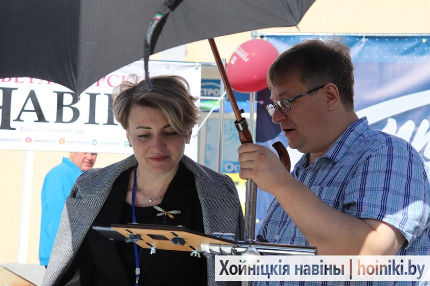 Не так далёка ад хойніцкіх журналістаў развярнулі тэматычную пляцоўку работнікі цэнтральнай раённай бібліятэкі. «Мележаўскі дворык» – так назвалі сваю выставу нашы творчыя і знаходлівыя бібліятэкары. Напярэдадні Дня беларускага пісьменства правялі значную этнаграфічную работу: знайшлі інфармацыю пра дзіцячыя гульні, якія былі папулярнымі ў дзетак мінулых стагоддзяў, запрасілі сучасных падлеткаў пагуляць у іх і стварылі па выніках гэтага даследвання кнігу. Усе жадаючыя маглі пагартаць старонкі выдання, абмеркаваць з аўтарамі і ацаніць вынаходлівасць продкаў.