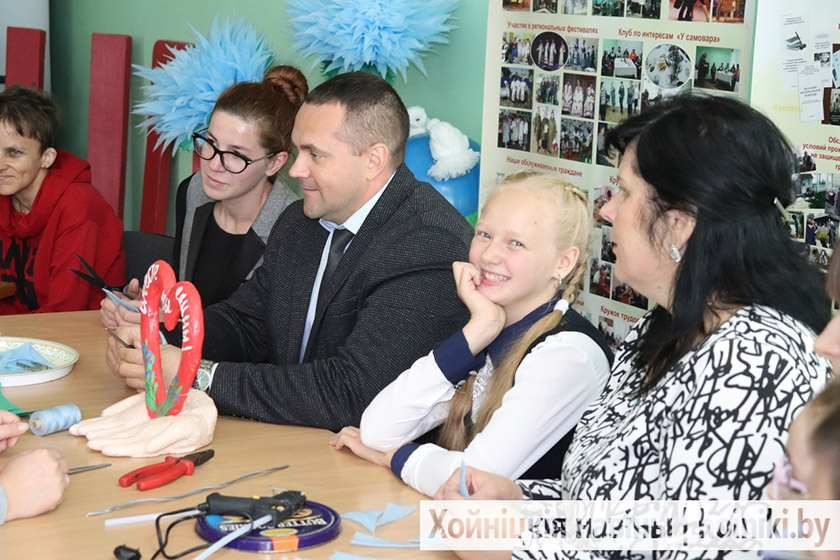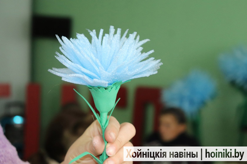 Поучаствовать в изготовлении символических васильков собрались воспитанники центра коррекционно-развивающего обучения и развития, отделения дневного пребывания для инвалидов ТЦСОН, приехал заместитель председателя райисполкома Сергей Кушнер.