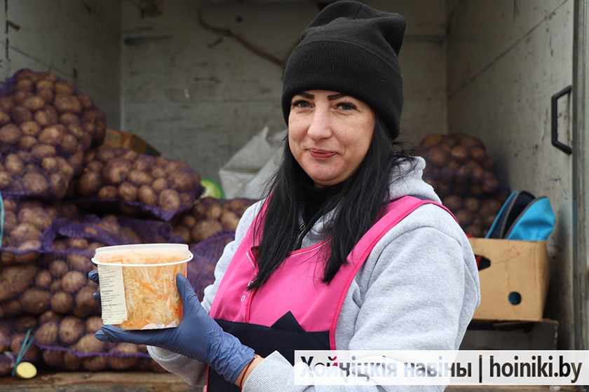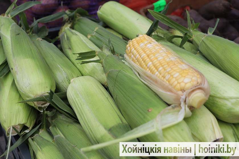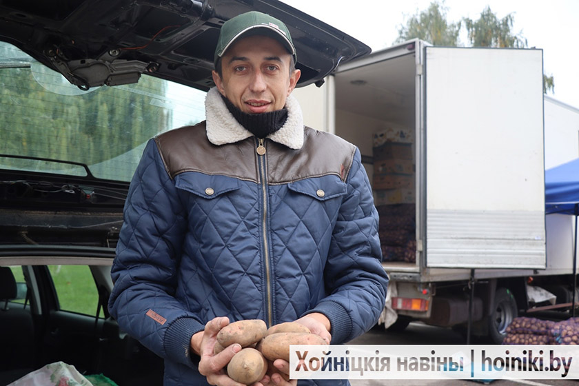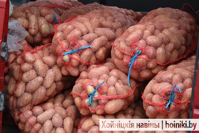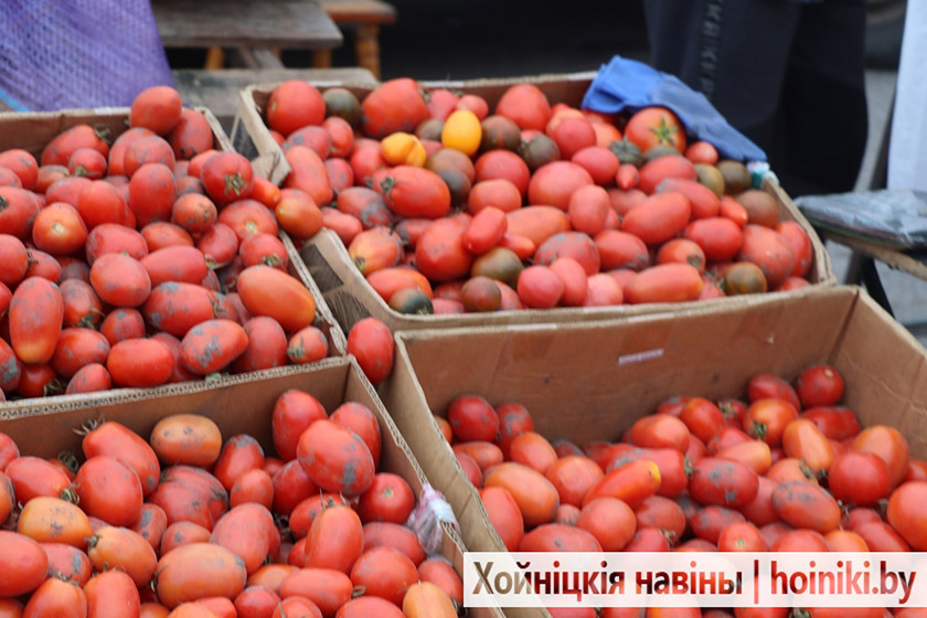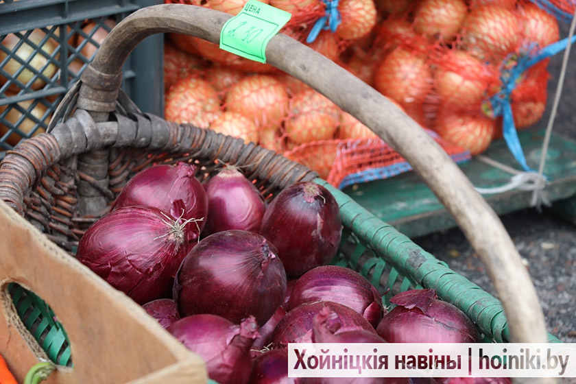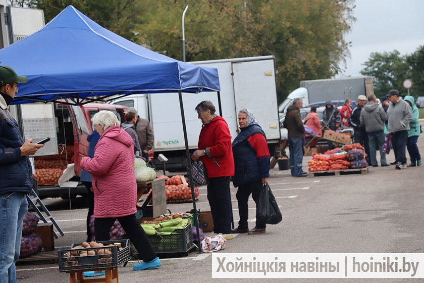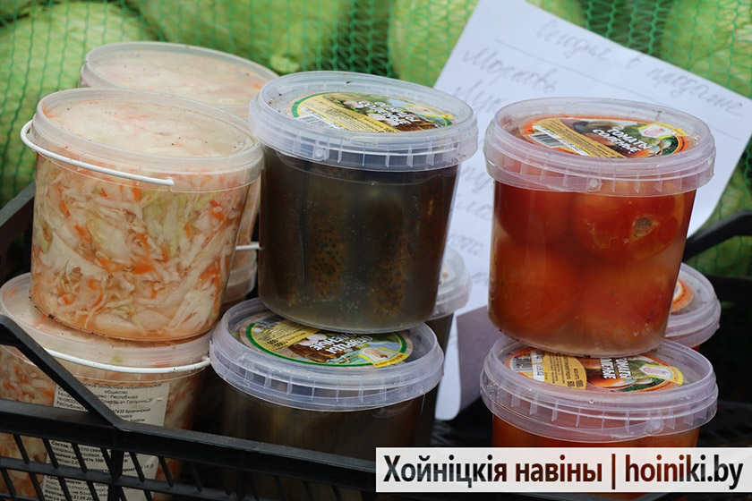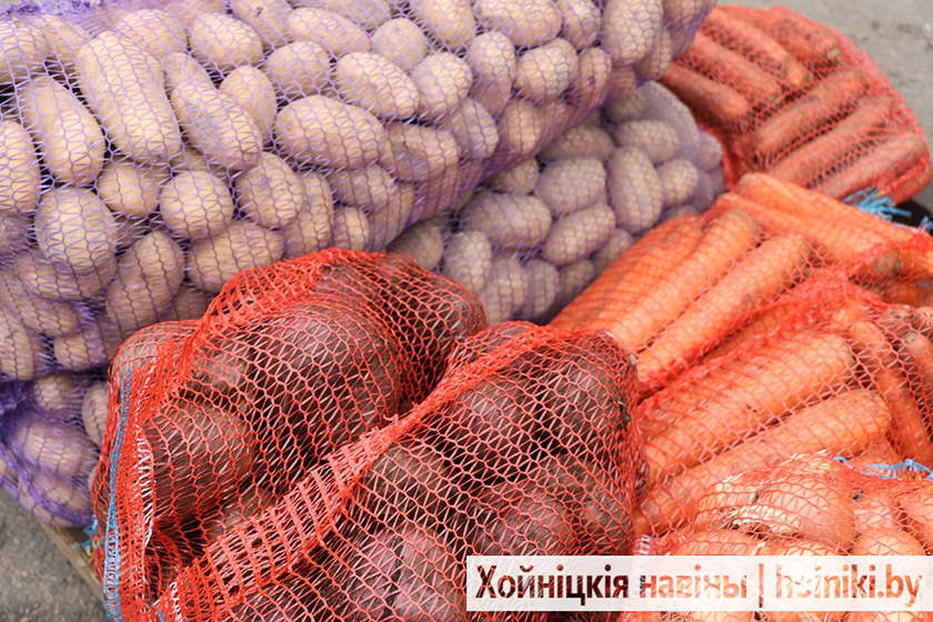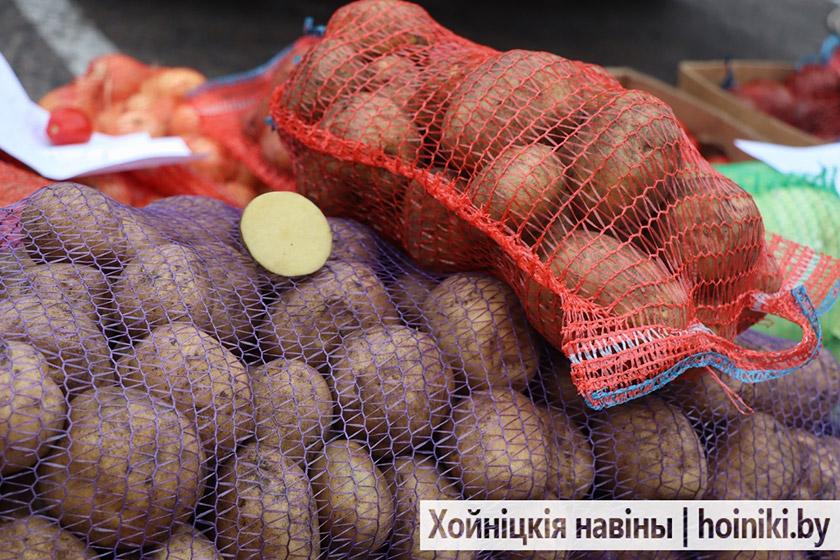 На площадке за Центром культуры г. Хойники сегодня настоящая выставка народного хозяйства — изобилие сортов картофеля, крупные перцы, томаты, лук, морковь и свёкла.