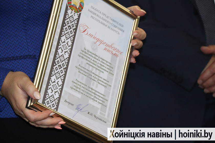 С Днём машиностроителя представителей промышленного флагамана и его руководителя Василий Смальцера поздравили председатель районного Совета депутатов Галина Бондарь, первый заместитель председателя райисполкома Дмитрий Шинкаренко, парламентарий Жанна Чернявская и председатель районного объединения профсоюзов Наталья Малаш.