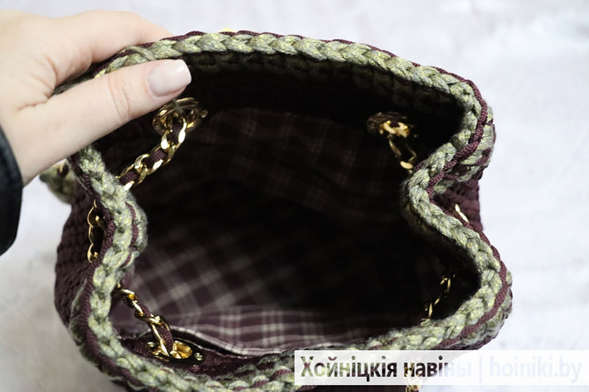 «Прызнаюся, першай сумкай, якую звязала, не задаволена. Шыўкі не такія і не роўныя месцамі. Аднак вопыта я ўжо паднабралася. Цяпер усё па «фэн-шую». Асабліва дачка хваліць сумкі. Некалькі штук ёй падарыла, яна з задавальненнем красуецца ў іх па вуліцы. Часта ў мяне пытаюцца: «З чаго раблю сумкі». Дык вось. Галоўны матэрыял – поліэфірны шнур. Таксама неабходную фурнітуру купляю», – расказвае Святлана Ляшчынская.