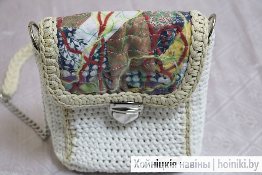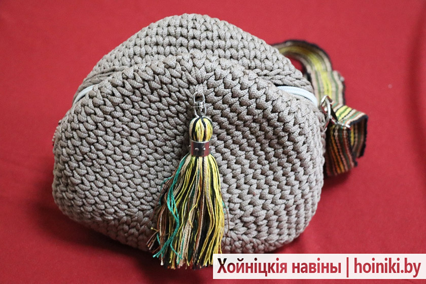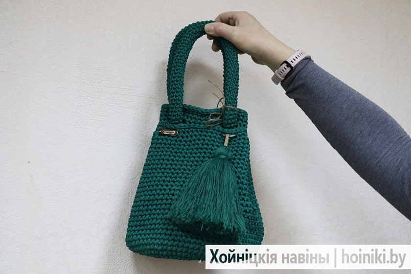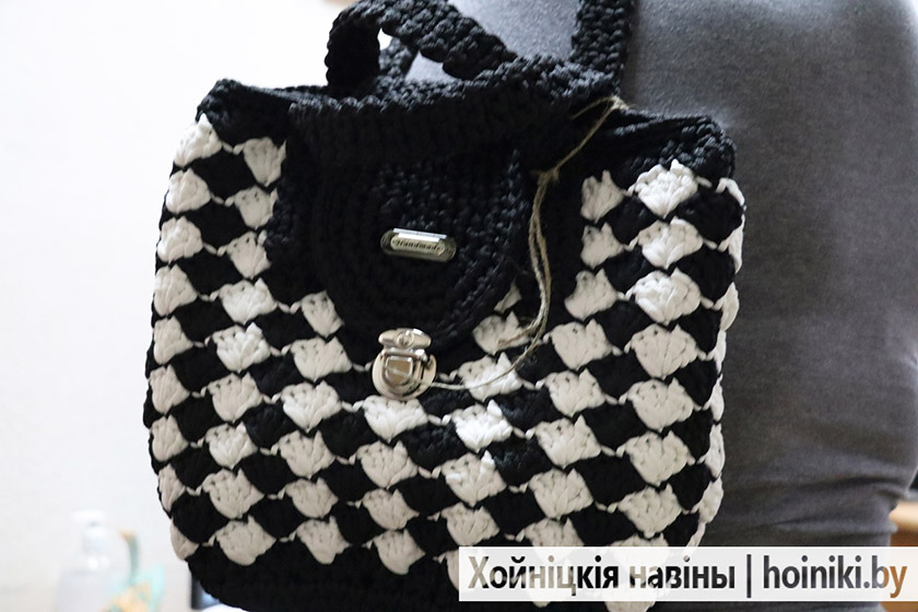 Але проста так узяць і прыхапіць першую, якая падвярнулася пад рукі, не хочацца. Трэба спалучыць яе па стылі і каляровай гаме з агульным успрыманнем. Жаданне плюс умелыя рукі – выходзіць эксклюзіўная вязаная кручком сумка ад хайнічанкі, кіраўніка гуртковай работы ТЦСАН Святланы Ляшчынскай. За паўгода жанчына нарабіла іх каля 40.
