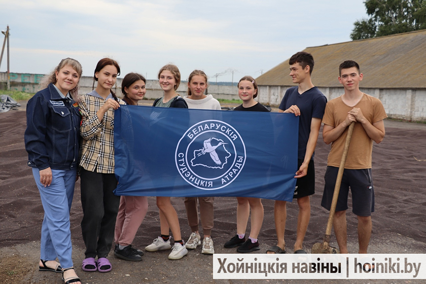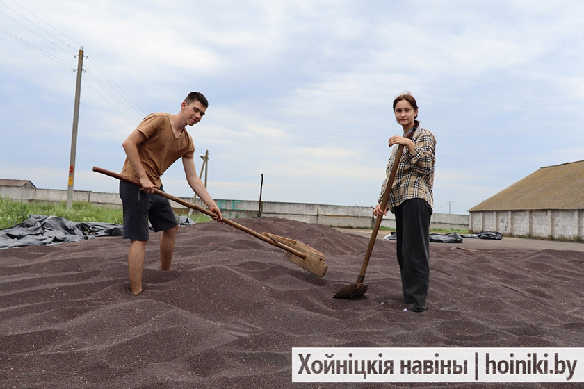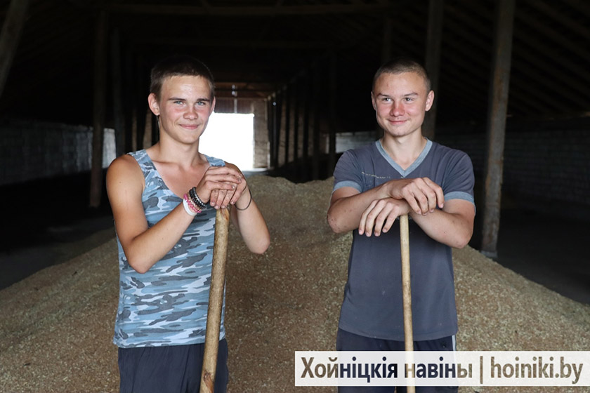На зернотоку много юношей и девушек – школьники, студенты. Например, Владимир Карловский – будущий учитель физической культуры, учится в Гомеле. К слову, уже молодой отец.