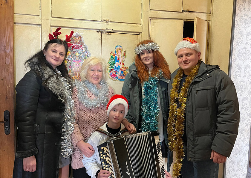 Профсоюзные активисты поздравили не только сладкими подарками, но и подготовили музыкальный подарок. На баяне сыграл юный хойничанин Алексей Сацура.