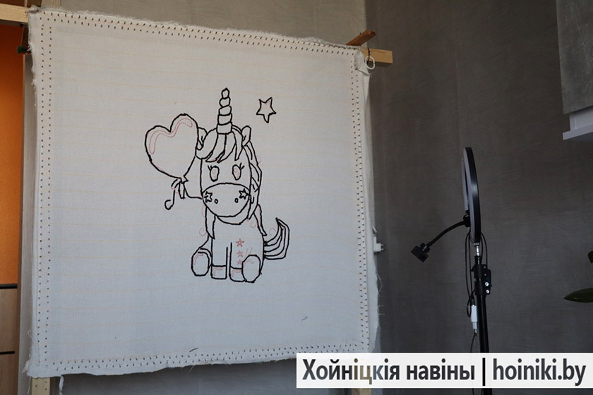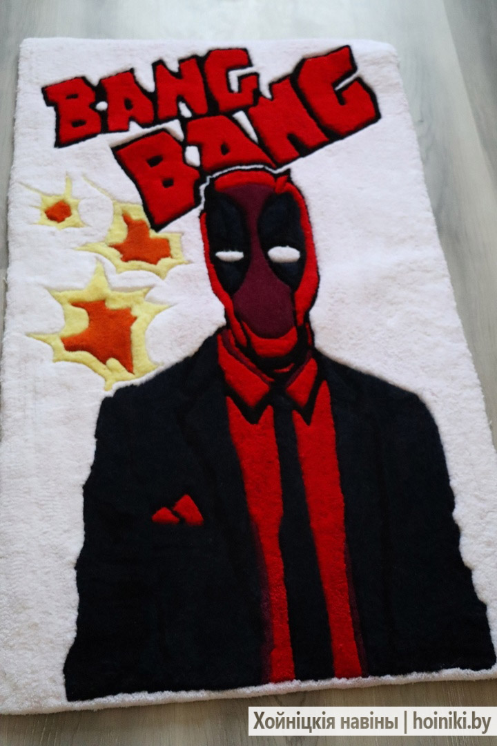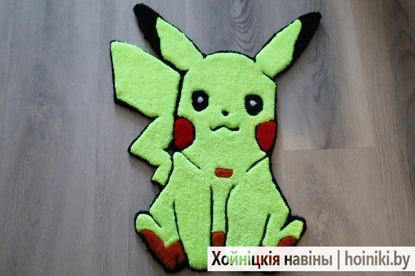 Мастерица призналась, что первая её работа в стиле тафтинга была неудачная. Зато теперь есть, что показать людям. 9 ковров создала хойничанка, есть и портретные панно, и с изображением мультяшных персонажей (Пикачу), музыкального инструмента (гитара). На данный момент занята над полотном с рисунком единорога. В основном, ковры её заказчики используют для уюта в доме. С таким креативным элементом интерьер смотрится намного красивее.