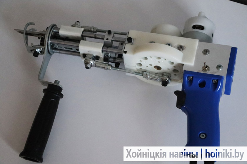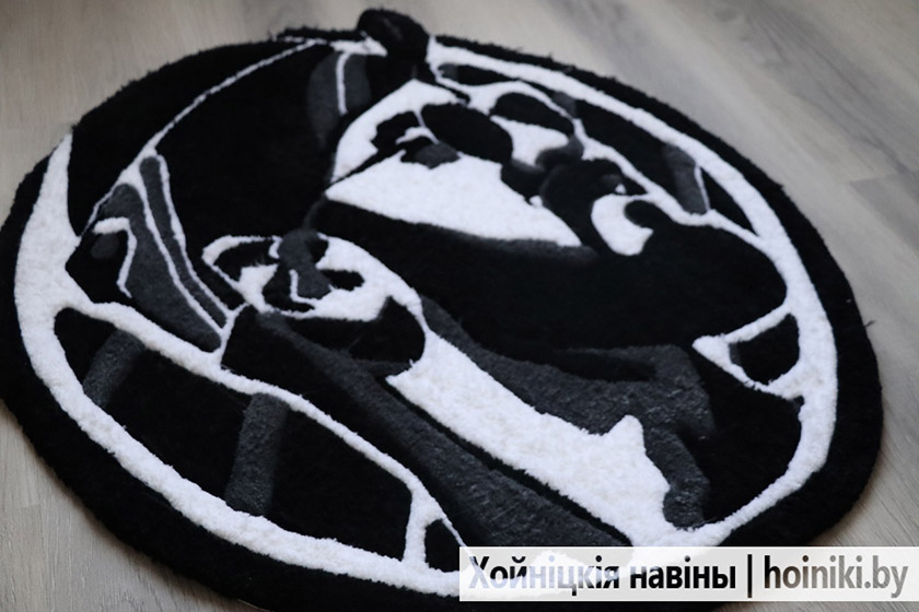 Как изготовить ковёр? На деревянную раму натягивается плотное полотно, через проектор на него отображается картинка. Рисунок хойничанка переводит маркером на ткань. Затем начинает «забивать» контур и рисунок ковра акриловыми нитками специальным пистолетом. Потом проклеивает ковёр (ткань сохнет 2 дня минимум) и оформляет задник. Завершающий этап – стрижёт коврик машинкой, ровняет шедевр ножницами, пылесосит. И изделие готово!