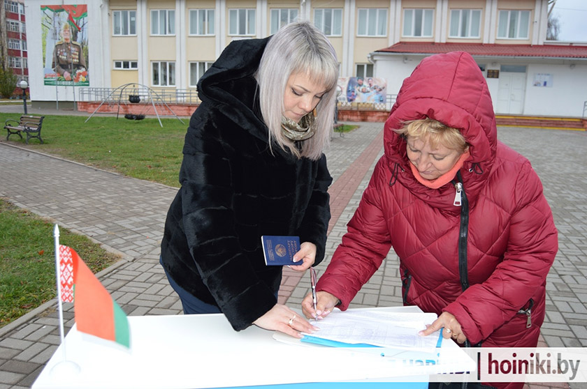 Избиратели подходят, предъявляют паспорт и собственноручно ставят дату подписи, расписываются в подписном листе.