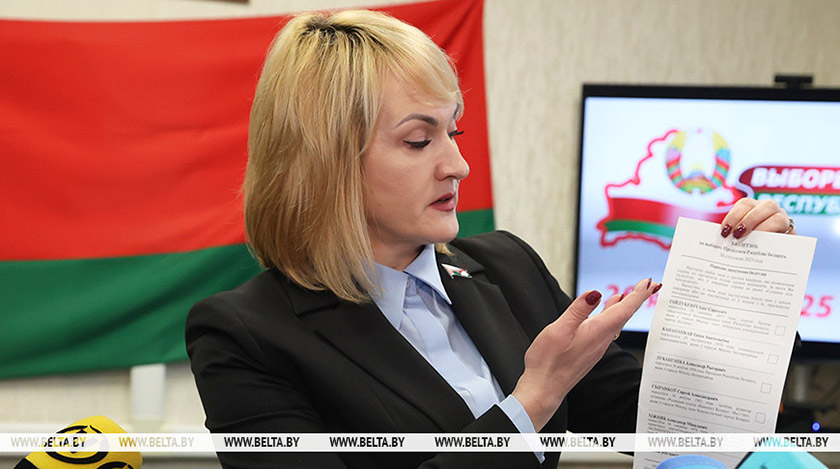 «Форма и текст бюллетеня установлены Центральной избирательной комиссией. Согласно требованиям ст.72 Избирательного кодекса бюллетень может изготавливаться на одном из государственных языков. Центризбиркомом принято решение об изготовлении его на белорусском языке, что, в принципе, традиционно для президентских выборов. Бюллетень в алфавитном порядке содержит сведения о кандидатах в Президенты. Размещен в бюллетене порядок его заполнения. И в эту кампанию мы дополнили бюллетень небольшой припиской для избирателей — предупреждением о том, что закон запрещает фото- и видеосъемку заполненного бюллетеня, а также вынос бюллетеней за пределы помещения для голосования», — отметила Елена Балдовская.