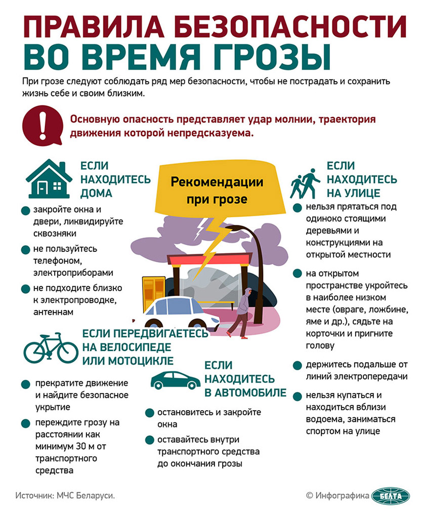 В МЧС напомнили о факторах опасности при грозе, сообщает БЕЛТА.