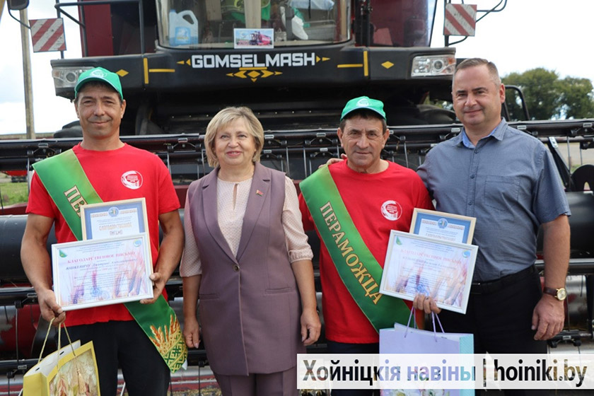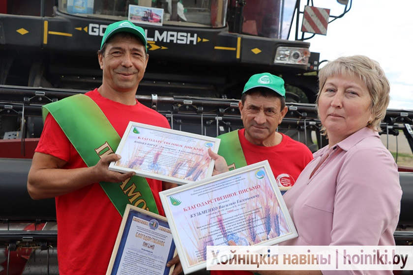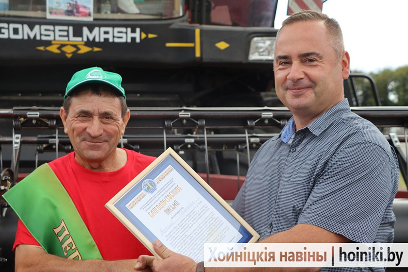 «Настроение всегда прибавляется, когда вывожу комбайн на хлебную ниву. Радуюсь тому, что поля у нас ухоженные, а урожай такой богатый – зерно рекой течёт. С напарником давно вместе работаем. Он и друг хороший, и аграрий отличный. Честно, на две тысячи мы рассчитывали. Приятно, когда нас вновь чествуют», – отметил старший комбайнер Дмитрий Юшкевич.