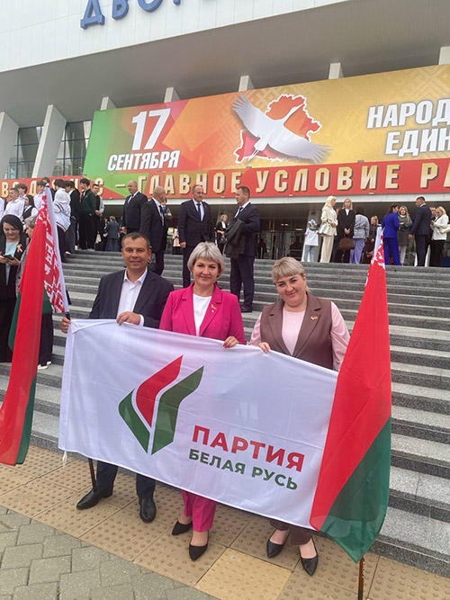 Наш район на ярком событии представили председатель районного Совета депутатов, лидер районного отделения Белорусской партии «Белая Русь» Людмила Рудченко, а также её партийные коллеги – председатель Поселичского сельисполкома Екатерина Мисючик и директор ОАО «Велетин Агро» Александр Кравченко.
