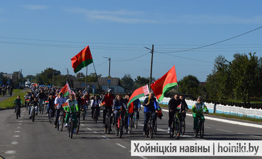 Более 150 хойничан приняли участие в сегодняшнем патриотическом велопробеге.