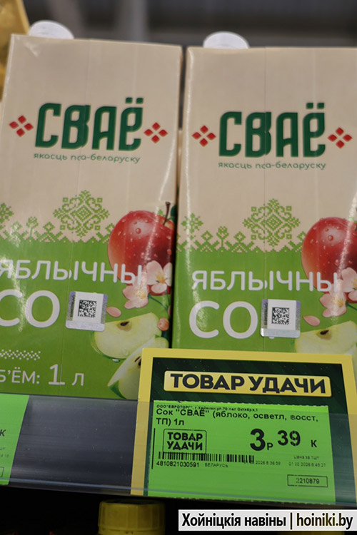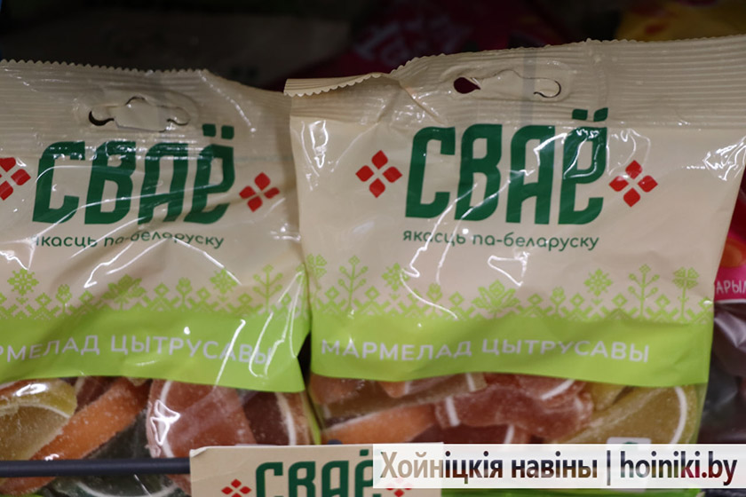Радует, что наш район также в этой «теме». На этой неделе журналист искала «СВОЁ» и ради этого посетила магазин «Евроопт» в Хойниках. Была приятно удивлена широкому ассортименту продукции белорусского производства, который отвечает всем ожиданиям покупателей. Причём, по приемлемым ценам. Согласитесь, большой бонус.