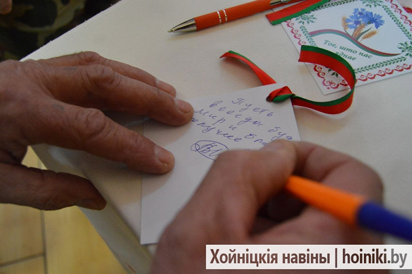 Каждый из участников смог оставить на память своё сообщение землякам под девизом «Тое, што нас яднае», закрепив его на импровизированной стене славы – на записках афганцев, конечно, пожелания мирного неба.