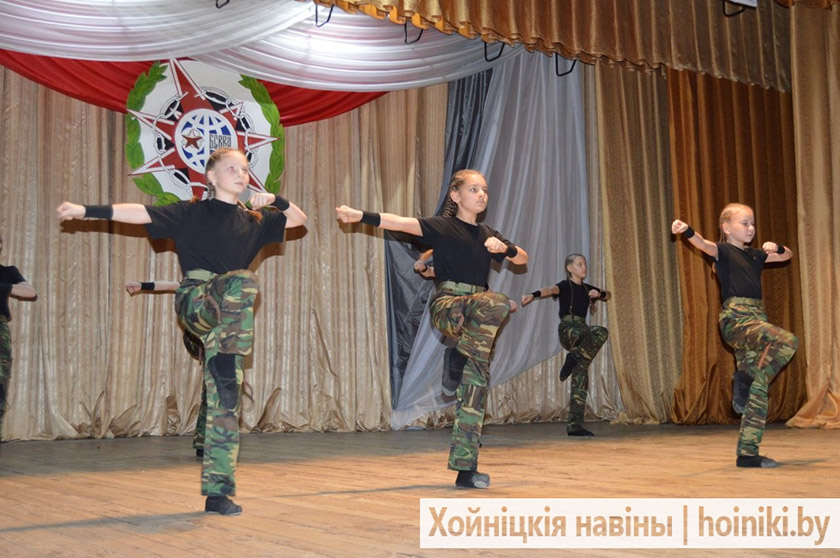 На сцене – песни о братстве, хореография мирной жизни и особый подарок – показательные выступления учащихся колледжа, которые посещают факультатив «Готовы Родине служить!»