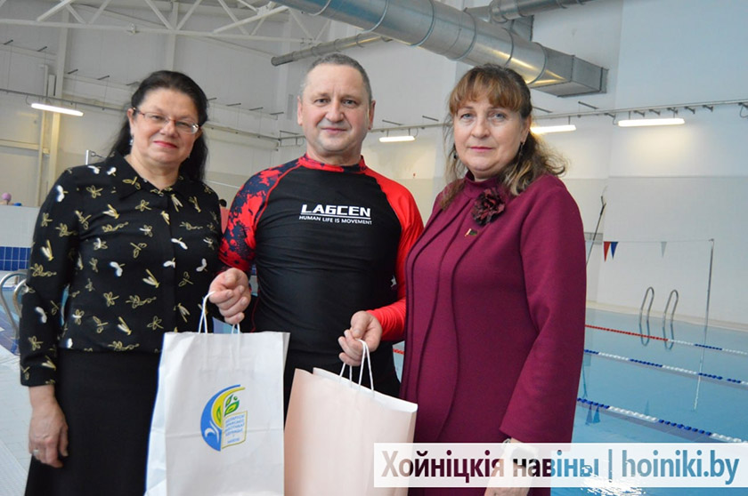 Учитель со стажем, Николай Романенко всерьёз готовился к заплыву. Поддержать коллегу пришли начальник отдела образования райисполкома Людмила Тупица и лидер райкома профсоюза работников образования и науки Светлана Добуш, а также директор гимназии Оксана Метельская.