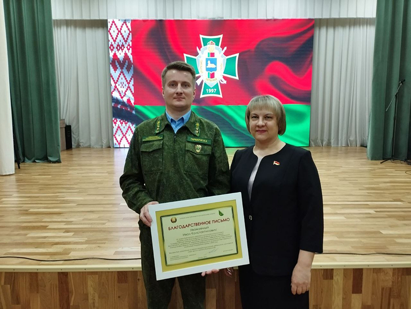 В числе награждённых и хойничанин – член добровольной дружины при Полесском заповеднике Иван Гарбарук удостоен Благодарственного письма за активное участие в охране Государственной границы Республики Беларусь и обеспечении пограничной безопасности, проявленный патриотизм и высокий гражданский долг при оказании помощи в обеспечении пограничной безопасности на участке ответственности Гомельской пограничной группы в 2025 году. Награду дружиннику вручила управляющий делами Хойникского райисполкома Алла Кузьменко.