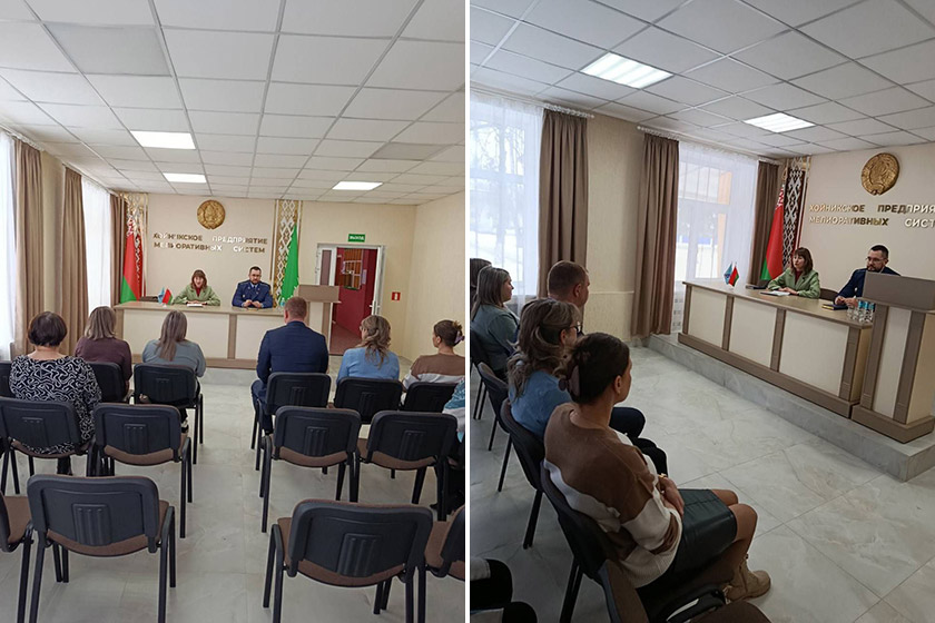 На предприятии мелиоративных систем его провела правовой инспектор труда областной организации профсоюза работников торговли, потребительской кооперации и предпринимательства Юлия Вайнилович.