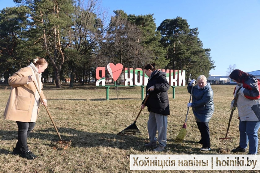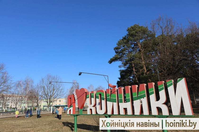 Кипит работа у символического знака «Я люблю Хойники» в райцентре.