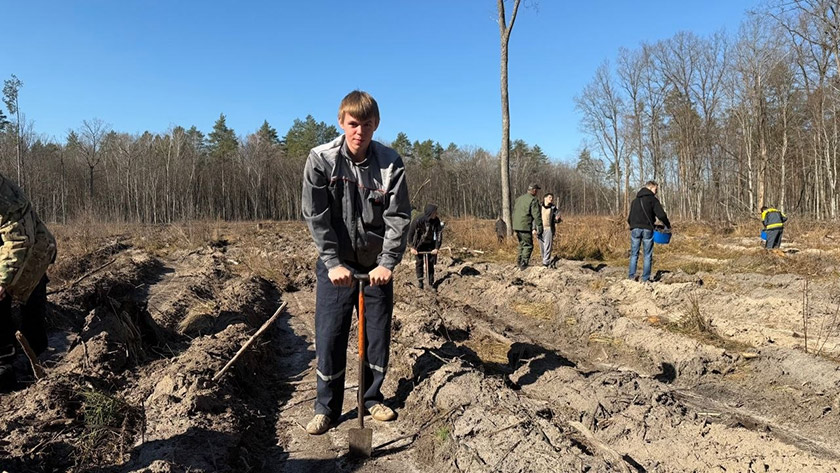 В первый же рабочий день ребята вместе с первым секретарём райкома БРСМ Натальей Ивлевой показали высокий темп и боевой настрой: высадили 5000 саженцев дуба и 2000 саженцев сосны!