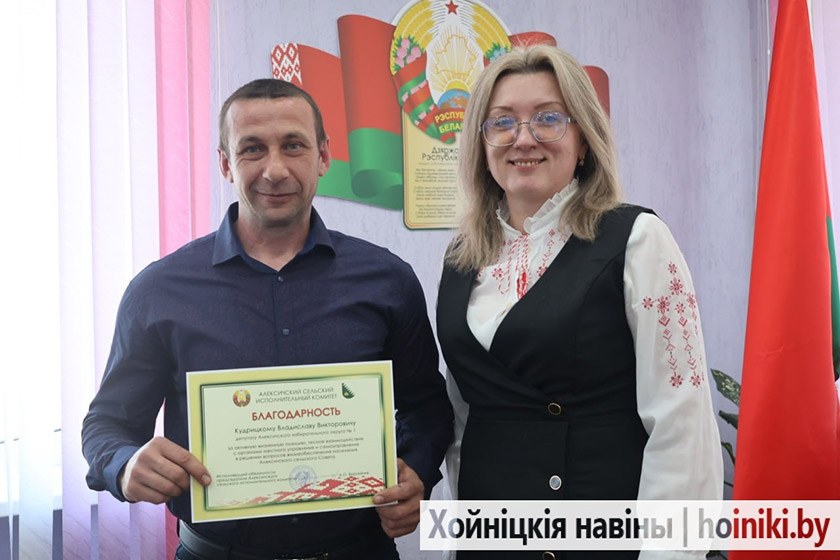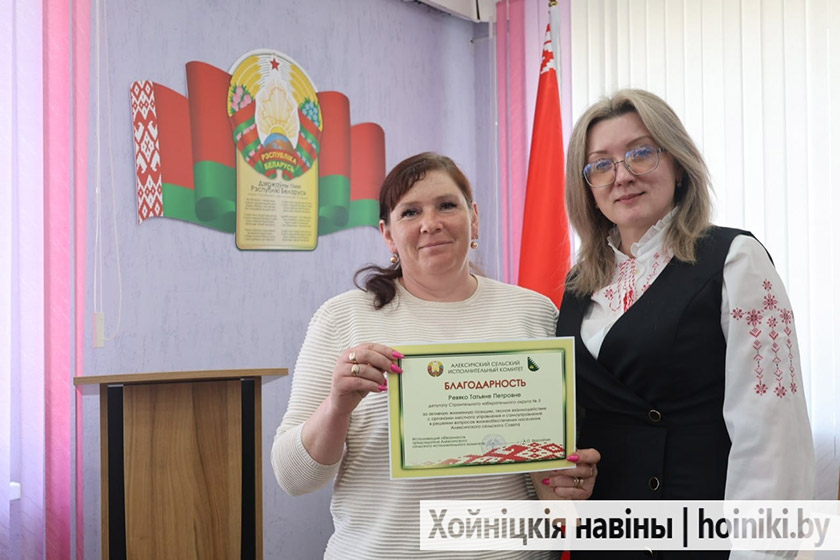 Пользуясь случаем, Анна Олеговна вручила Благодарности сельисполкома депутатам Владиславу Кудрицкому и Татьяне Ревяко.