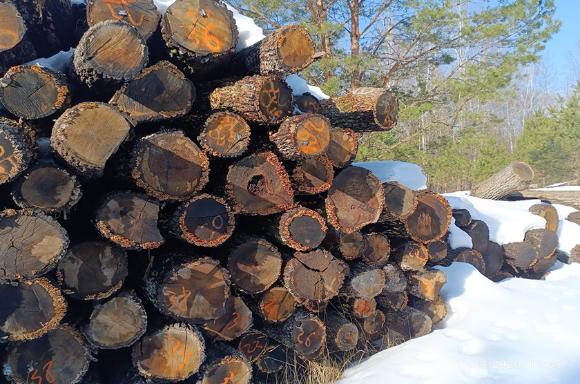Например, в Речицком опытном лесхозе в заготовленной в 2023-2024 годах древесине дуба обнаружены трещины, гниль и грибковые поражения. С аналогичными признаками хранилась деловая древесина берёзы в Буда-Кошелёвском опытном лесхозе. Порча деловой древесины сосны и берёзы выявлена на временном складе лесхозов Брестской области в г. Речица. А длительное хранение Копыльским опытным лесхозом в лесном фонде Буда-Кошелёвского района деловой древесины берёзы привело к тому, что она превратилась в дрова.