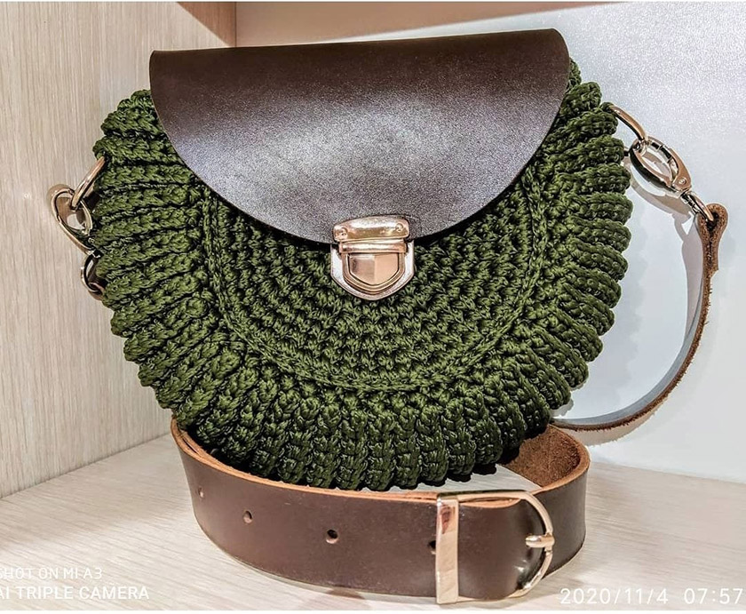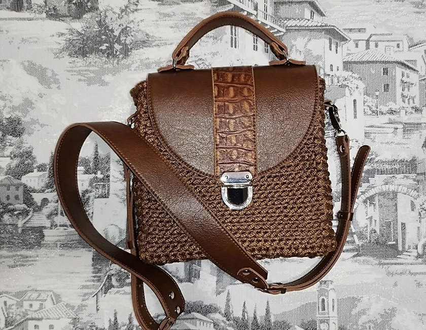 – Уходит не меньше трёх дней. Если есть вдохновение, то и за сутки можно управиться – быстрее пока не получается. Конечно, многое зависит от размера сумки. К слову, могу месяцами ни за что не браться, а потом как будто срабатывает щелчок – вдруг осознаю, что хочу это связать. И понеслась! Могу взахлёб плести ночи напролёт. Сначала вяжу основу сумки, потом пришиваю кожаные детали, отпариваю и пришиваю подкладку.