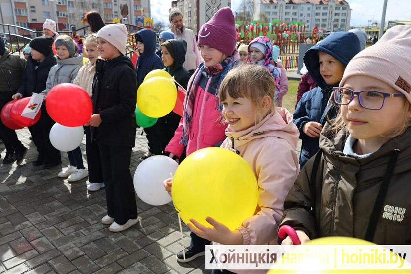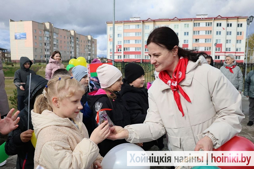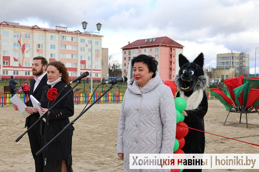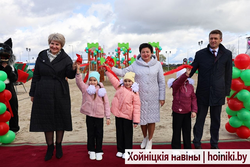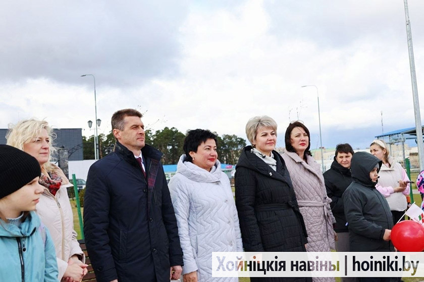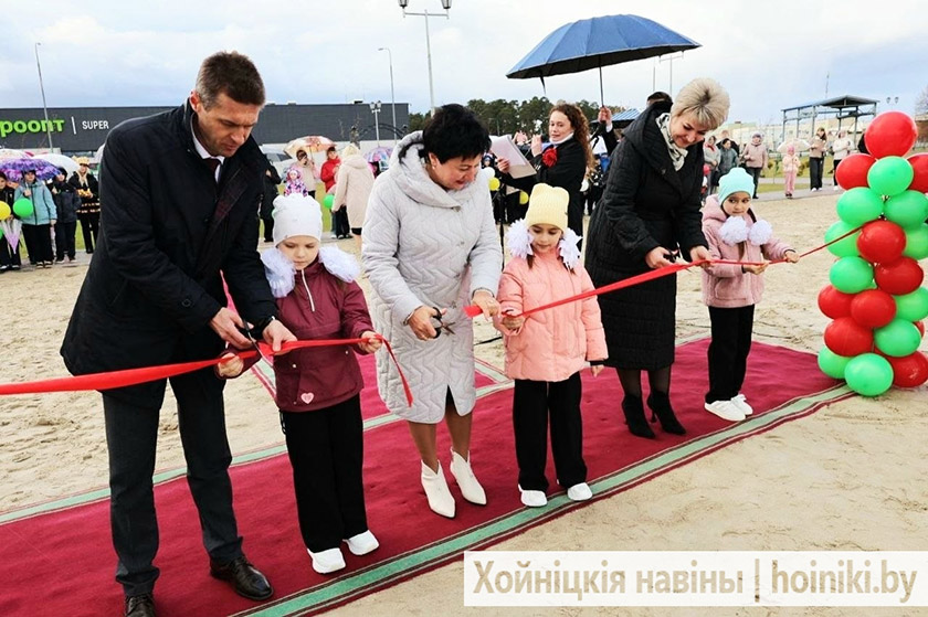 К землякам обратился и председатель районного исполнительного комитета Дмитрий Шпиганович. Вместе с сенатором Аллой Смоляк и председателем районного Совета депутатов Людмилой Рудченко они перерезали символическую ленту. Вместе со взрослыми почётное право принять участие в открытии игрового комплекса предоставили первоклассницам городской гимназии.