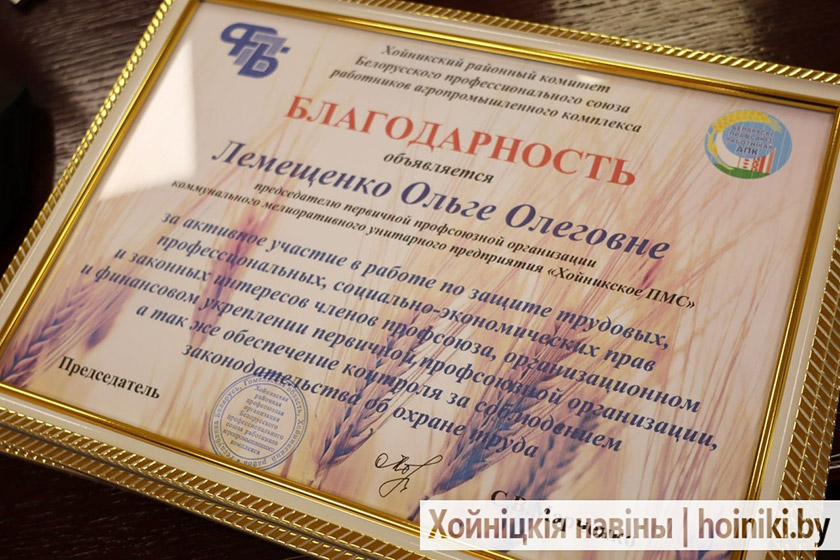 Отмечены наградами лидеры профсоюзных первичек Ольга Лемещенко (Хойникское ПМС) и Юрий Потапенко (завод ЖБИ), а также инженер по охране труда эксбазы «Стреличево» Александр Сидорок.