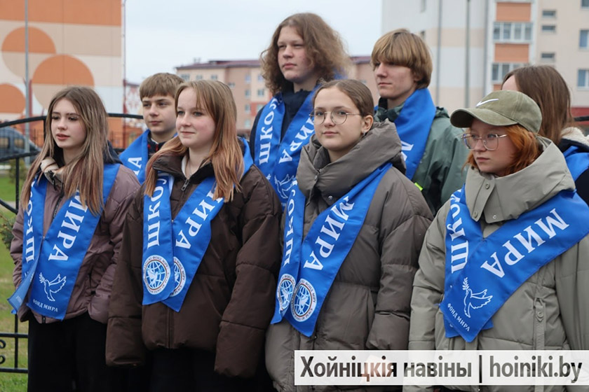 Важно отметить, что Белорусский фонд мира тесно сотрудничает с Хойникским районом. Ярким примером этому служит тот факт, что по инициативе фонда средней школе № 3 г. Хойники в минувшем году присвоено почётное звание «Школа мира».