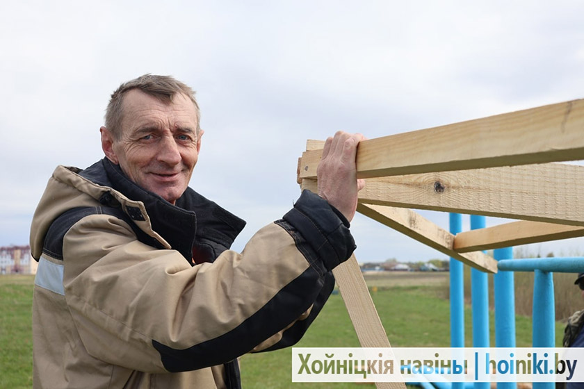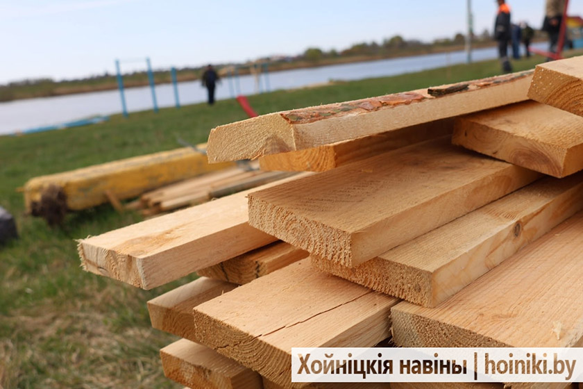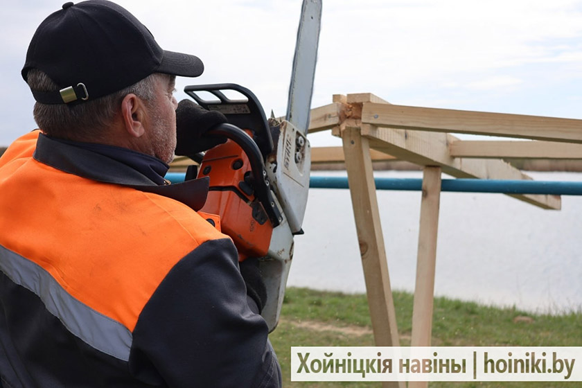 Работники лесхоза стараются: своими руками смастерили деревянные раздевалки, завершают сколачивать теневые зонтики.