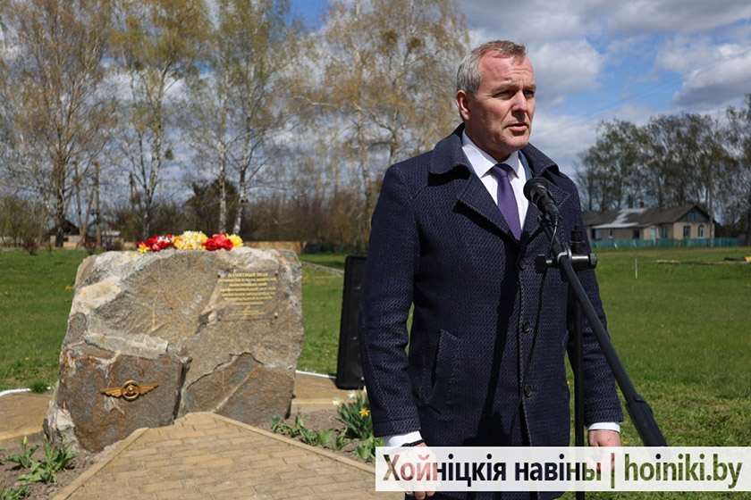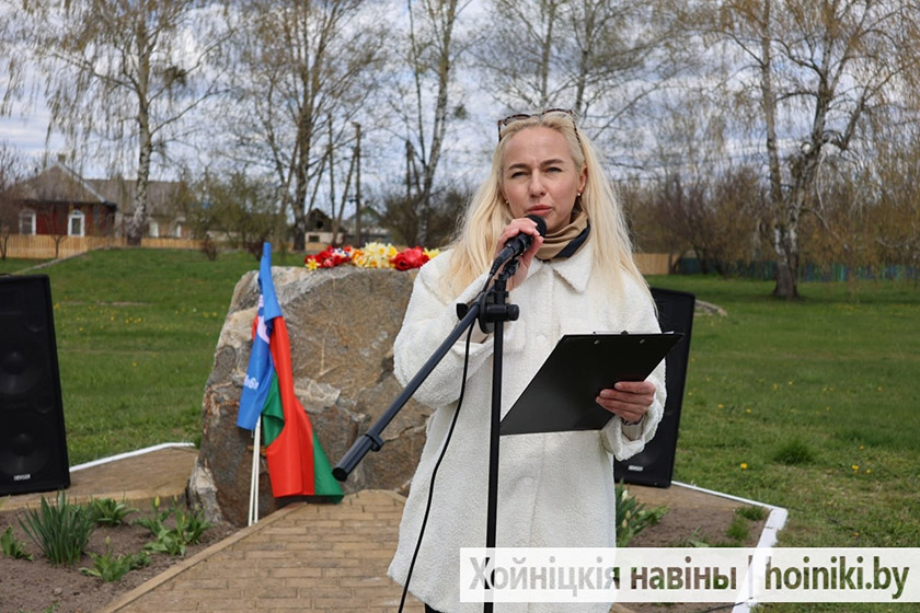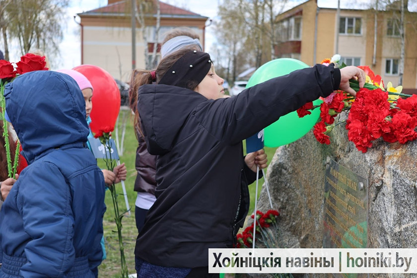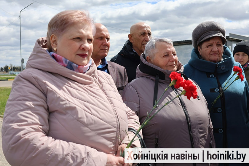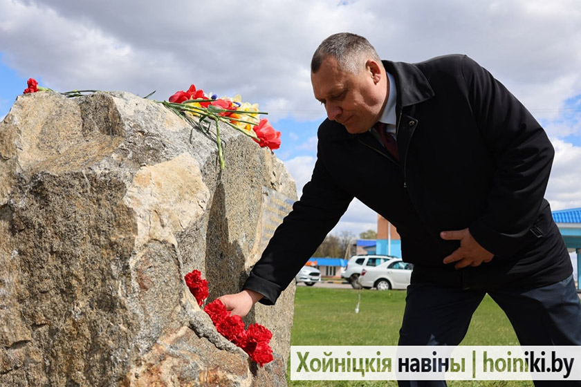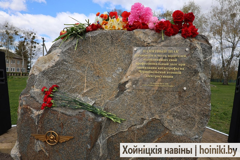 У Памятного знака водителям-ликвидаторам и прошёл торжественный митинг. Этот гранитный валун был установлен в 2016 году по инициативе ОАО «Гомельоблавтотранс» в память о подвиге шофёров, которые под «бомбардировкой» радиацией вывозили людей из смертельной зоны.