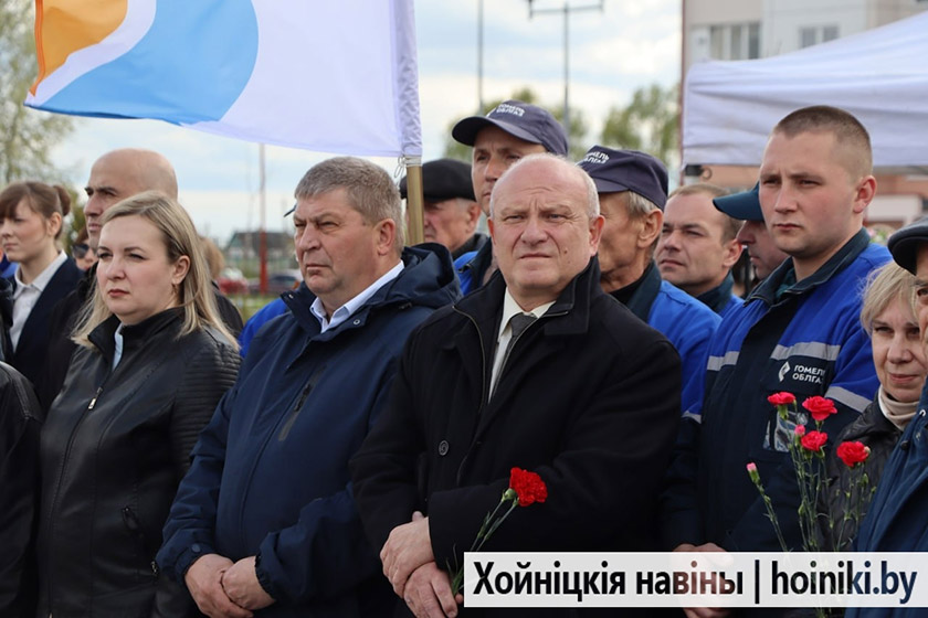 Под музыку в исполнении военного оркестра Гомельской пограничной группы все участники возложили живые цветы к подножию памятника Энергетикам и почтили минутой молчания память погибших ликвидаторов.