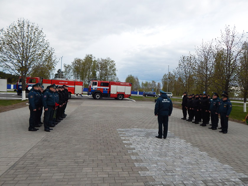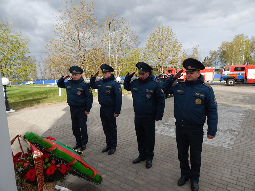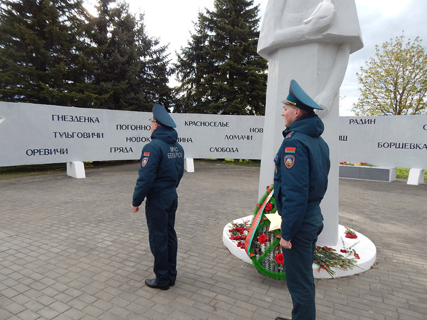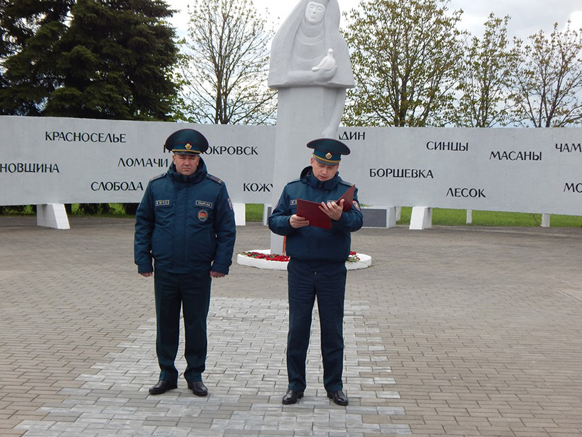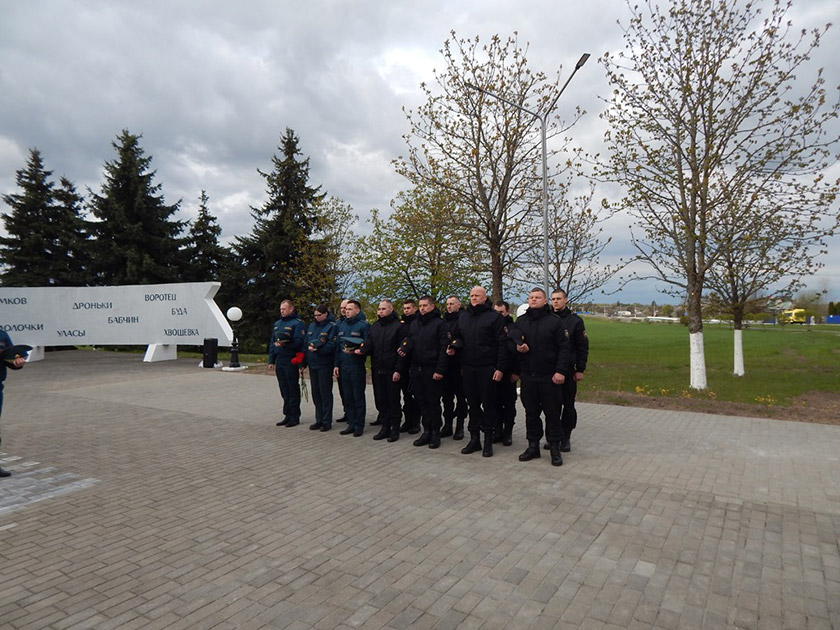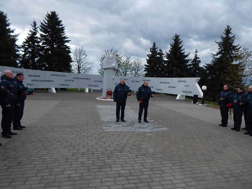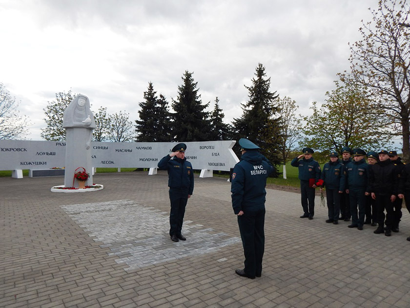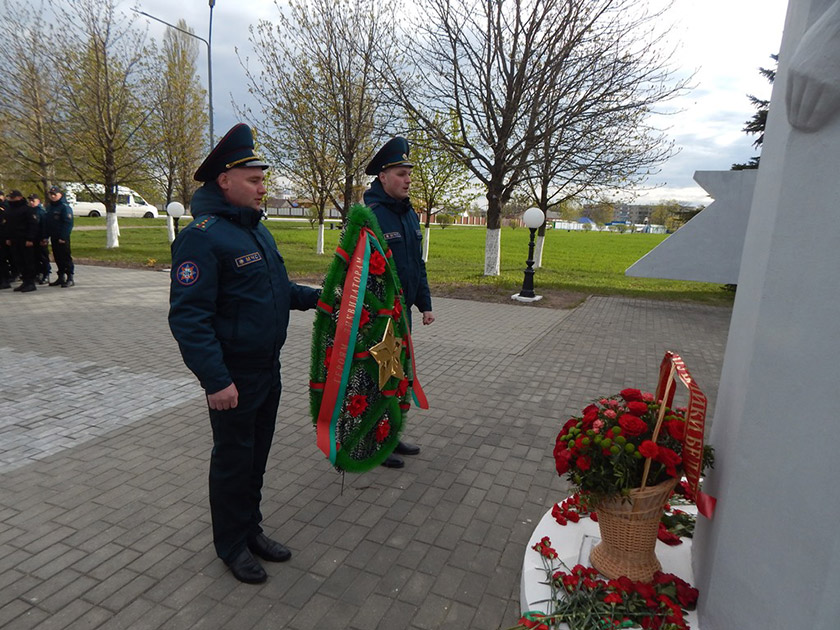 В память о событиях 26 апреля 1986 года спасатели почтили память погибших минутой молчания и возложили цветы и венок к памятному мемориалу выселенным населённым пунктам Хойникского района.