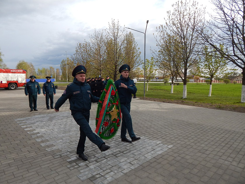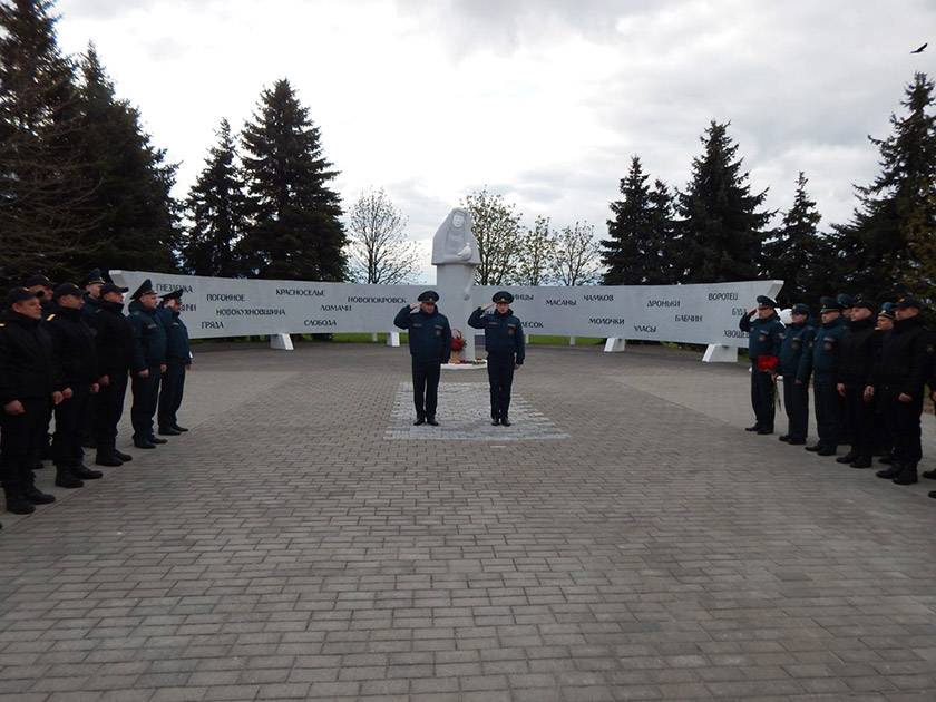 Чтобы отдать дань уважения погибшим ликвидаторам и выразить благодарность всем ветеранам-спасателям, рисковавшим собой в борьбе с разбушевавшимся атомом спасатели традиционно провели приём-сдачу дежурства у монумента.