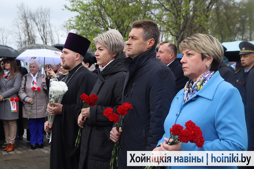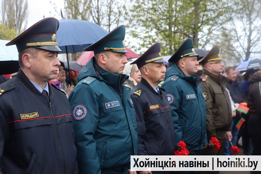 У памятника Скорби собрались участники ликвидации аварии на ЧАЭС, представители районной власти, депутатского корпуса, силовых служб, духовенства, трудовых коллективов, ветеранской организации, молодёжь и простые жители города, неравнодушные к беде, которая постигла Беларусь в апреле 1986 года.