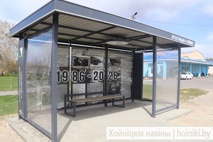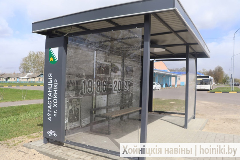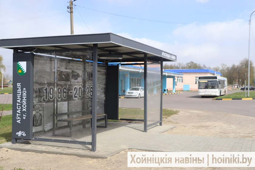 Самым заметным стала остановка на хойникской автостанции: конструкция оформлена в память о 40-летии аварии на Чернобыльской АЭС и наглядно подчёркивает вклад земляков в ликвидацию её последствий.