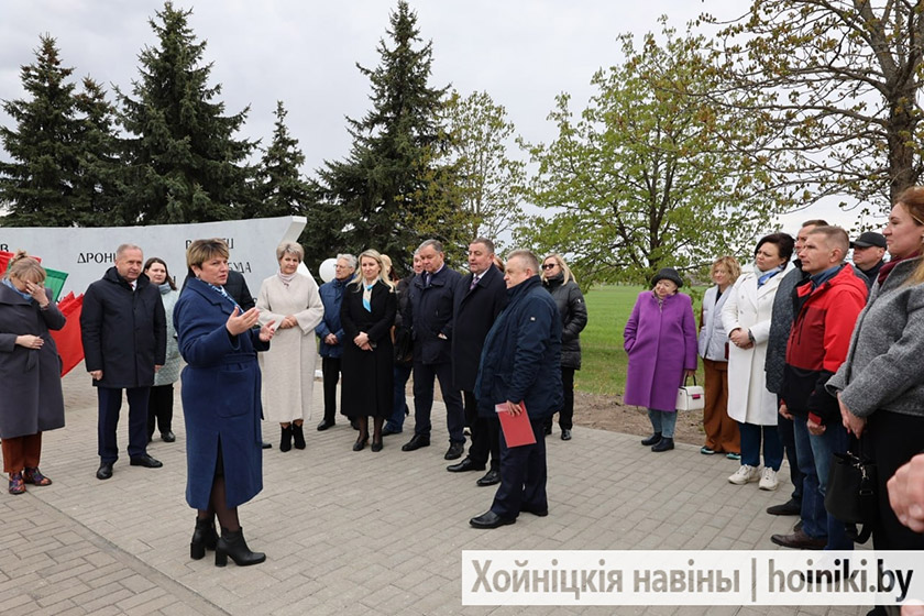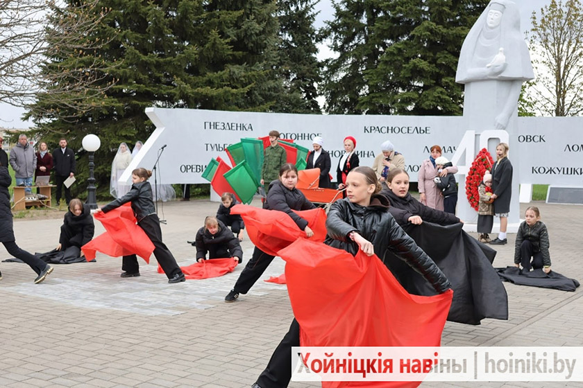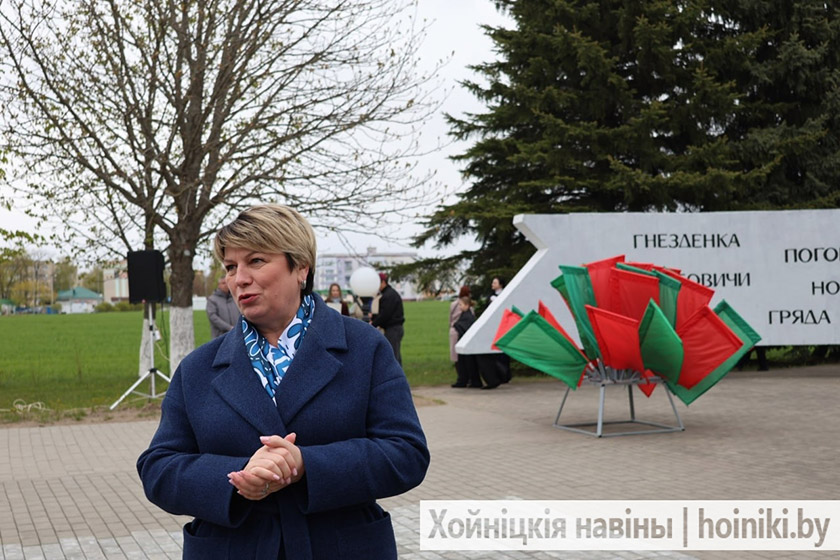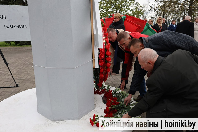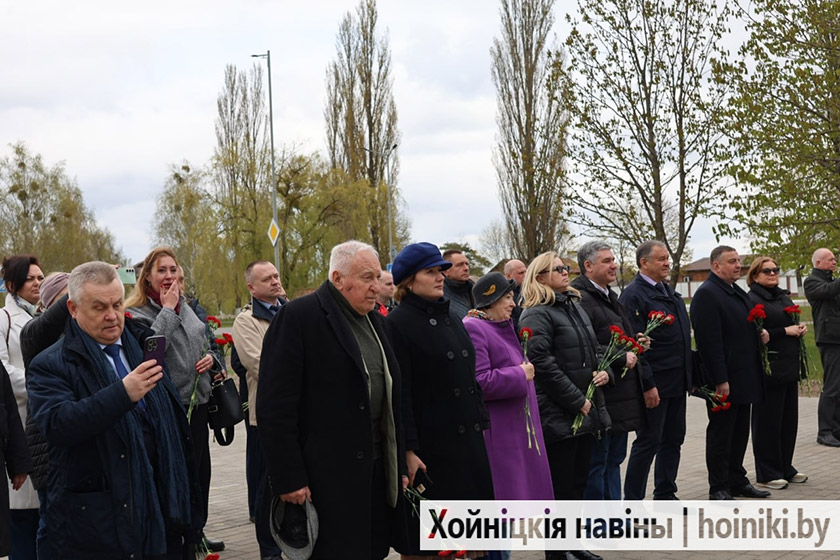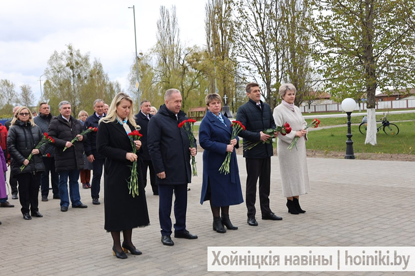 Делегация во главе с парламентарием Жанной Чернявской посетила памятник Скорби, чтобы почтить память отселённых деревень района и возложить живые цветы к мемориалу. Участие в памятном событии приняли также председатель Хойникского райисполкома Дмитрий Шпиганович и председатель районного Совета депутатов Людмила Рудченко.