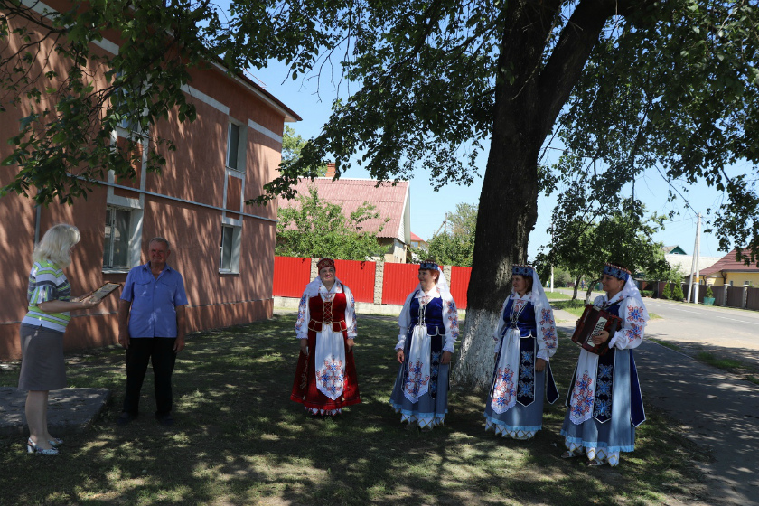 Приятно было наблюдать, как баянист рад, что ему устроили концерт прямо возле его дома. Частушки собственного сочинения от «Спадчыны», посвящённые аккомпаниатору, пришлись ему по вкусу, а Благодарность отдела идеологической работы, культуры и по делам молодёжи райисполкома, которую вручила Николаю Ивановичу начальником отдела Наталья Ещенко, стала очередной наградой за его талант. А чтобы дома у баяниста всегда был мир, спокойствие и благосостояние коллектив подарил ему оберег.