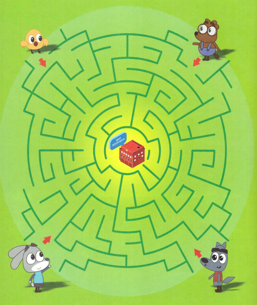 Помоги героям найти дорогу в Центр безопасности.