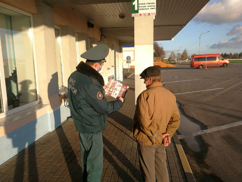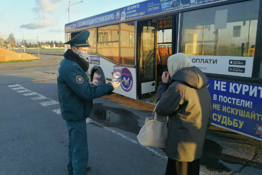 В рамках республиканской акции «Не прожигай свою жизнь!» работники Хойникского районного отдела по чрезвычайным ситуациям пообщались не только с пассажирами общественного транспорта, но и с гражданами ожидающими этот транспорт на остановочных пунктах и автовокзале города Хойники.
