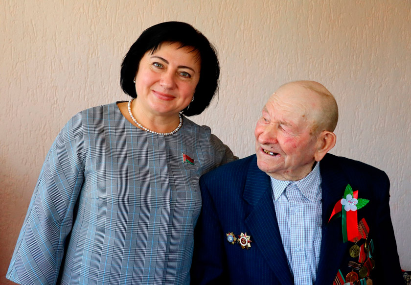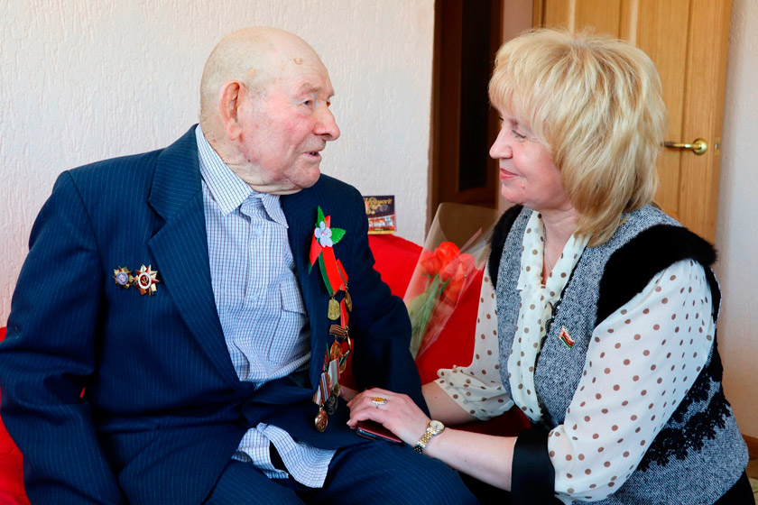 В преддверии Дня Победы член Постоянной комиссии Совета Республики Национального собрания Республики Беларусь по образованию, науке, культуре и социальному развитию Алла Смоляк и председатель районного Совета депутатов Галина Бондарь с цветами и подарками навестили на дому участников Великой Отечественной войны Николая Никитовича Цыганкова и Ивана Игнатовича Шкурко.