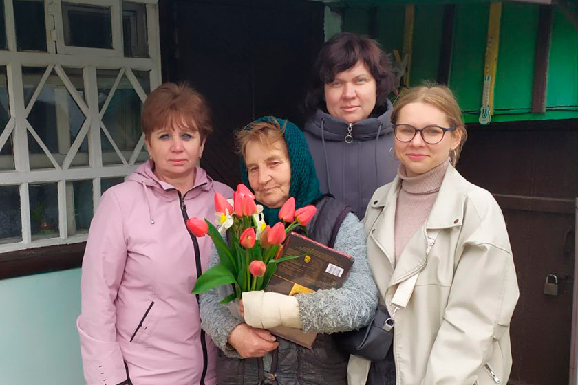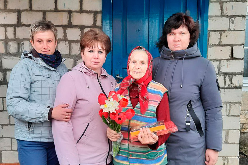 Председатель профкома ветстанции Людмила Евтушенко и работники учреждения с подарками и поздравлениями отправились к ветеранам труда, «детям войны» Татьяне Михайловне Журавской, Нине Адамовне Полянской, Раисе Ануфриевне Ефименко, Софье Евгеньевне Белаш.