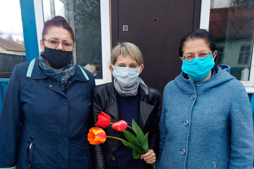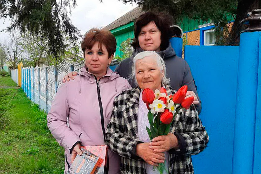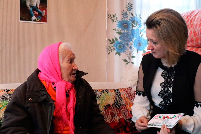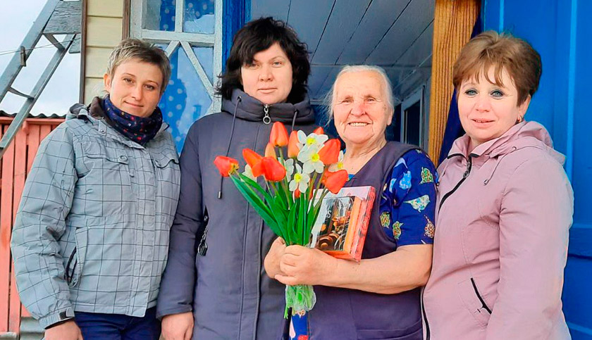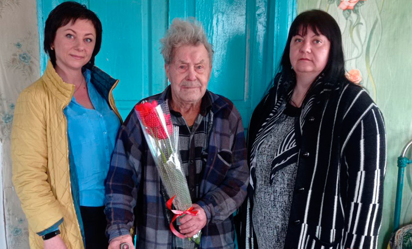 Председатель райкома профсоюза работников АПК Анна Вергейчик с цветами и подарками посетила ветерана труда Маизу Даниловну Дашук и тыловика Виктора Семёновича Мамаева.