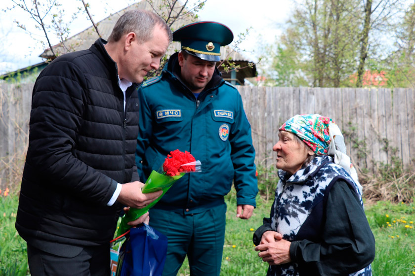 Депутат областного Совета депутатов, генеральный директор ОАО «Гомельоблавтотранс» Дмитрий Старостенко и депутат районного Совета депутатов, начальник РОЧС Виктор Сацура навестили Лидию Павловну Гордиенко, дочь участника войны, который пал смертью храбрых на фронте.