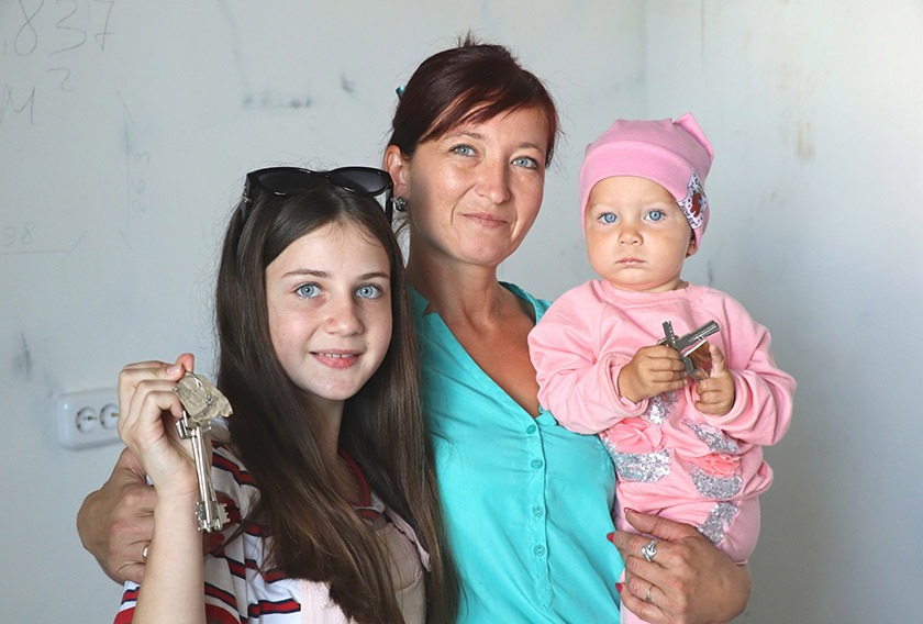 Ещё одним счастливым обладателем квартиры стала семья Сульженко из Судково, у которой также четверо детей. Старший сын не приехал, а вот, Полина, Артём и Камилла вместе с мамой Татьяной с нетерпением ждали получения ключей. Маленький Тёма сообщил, что денег в копилку теперь нужно будет больше собирать, ведь рядом с домом расположен «Евроопт».