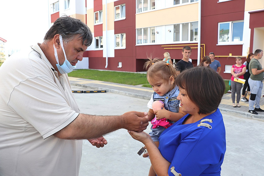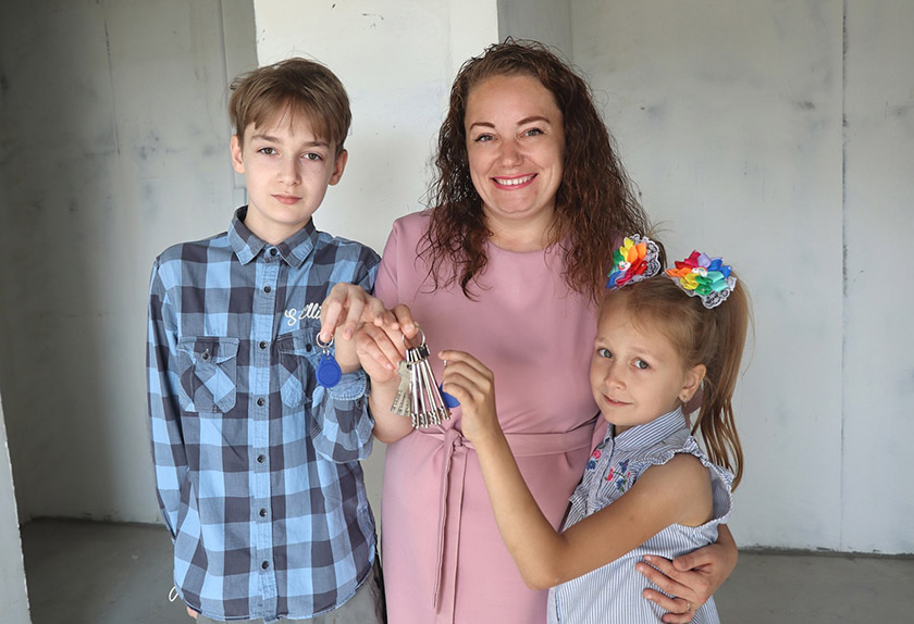 Одним из первых, с кем мы пообщались, стала Марина Воробей. Получать ключи она пришла с сыном Денисом и дочерью Ксенией (всего же в семье четверо детей). Многодетная мама поделилась, что они построили квартиру с привлечением государственной поддержки. И рассказала, что у Дениса сегодня день рождения и это радостное событие – прекрасный подарок на праздник.