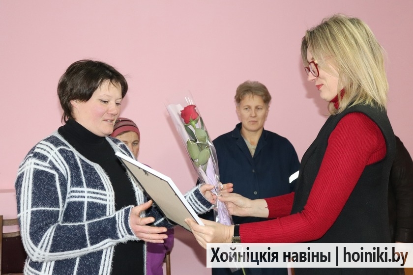 В холодный ноябрьский день согрели тёплыми словами поздравлений и оператора машинного доения ДМБ «Корчёвое» ОАО «Велетин Агро» Елену Калыхан. В присутствии её коллег Анна Олеговна передала труженице Благодарность областного комитета.